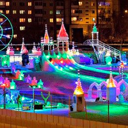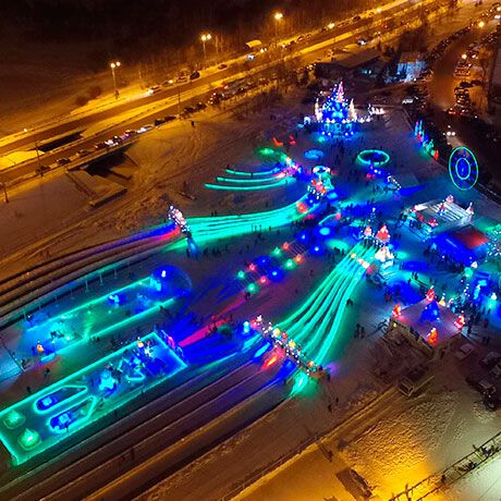 Семейный парк зимних развлечений. Виражные горки, ледяные чаши, разнообразные аттракционы, веселые праздники и интересные семейные мероприятия