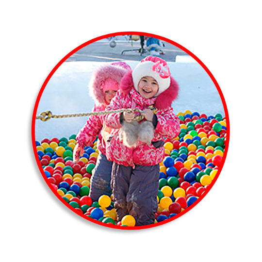 Зимние сухие бассейны, где дети с удовольствием барахтаются и катаются, стараясь вылезть из аттракциона-ловушки.